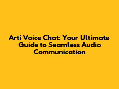 Arti Voice Chat: Your Ultimate Guide To Seamless Audio Communication