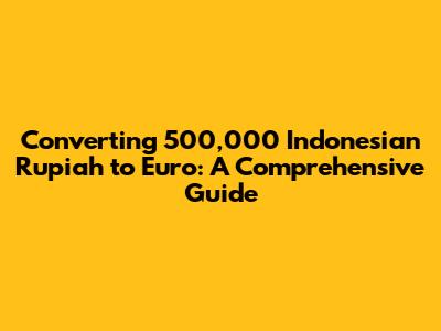 Hey there, finance enthusiasts! Ever wondered about converting 500,000 Indonesian Rupiah (IDR) to Euro (EUR)? Well, you're in the right place! This guide breaks down everything you need to know, from the current exchange rates to the best ways to make the conversion. We'll dive into the nitty-gritty, ensuring you're well-equipped to handle your currency exchange needs. Let's get started, shall we?