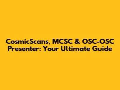 Hey guys! Ever stumbled upon the incredible world of CosmicScans, the MCSC (which, by the way, stands for something super cool!), and the OSC-OSC Presenter? If you're scratching your head, wondering what all this jazz is about, you're in the right place! We're about to dive deep into these awesome topics, breaking down everything you need to know. Whether you're a total newbie or just looking to brush up on your knowledge, consider this your ultimate guide. We'll explore what each of these things is, why they're important, and how they all connect. Get ready to have your mind expanded because we're about to embark on a thrilling journey through the realms of CosmicScans, MCSC, and the OSC-OSC Presenter! Buckle up, buttercups, it's gonna be a fun ride.