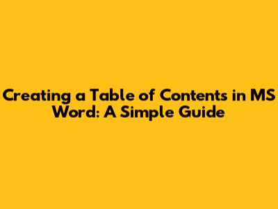 Creating a table of contents (TOC) in MS Word is a fundamental skill that significantly enhances the readability and professionalism of your documents. Whether you're working on a thesis, a report, or a book, a well-structured TOC allows readers to navigate your content quickly and efficiently. Instead of manually compiling page numbers and headings, MS Word offers automated tools to generate and update your TOC dynamically. Guys, let's dive into the simple step-by-step process to create a table of contents in MS Word.