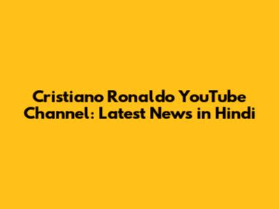 Cristiano Ronaldo YouTube Channel: Latest News In Hindi