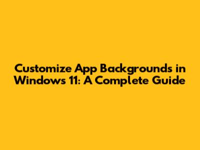 Customize App Backgrounds In Windows 11: A Complete Guide