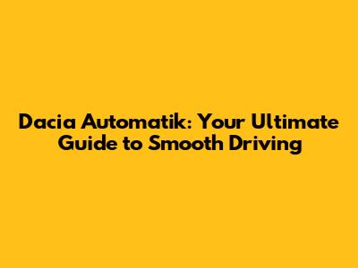 Dacia Automatik: Your Ultimate Guide To Smooth Driving