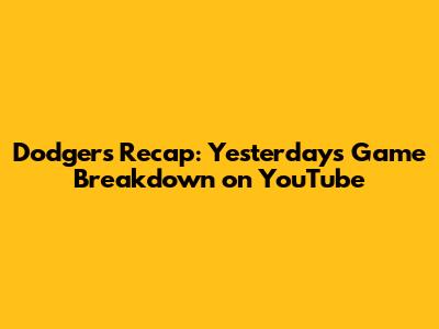 Dodgers Recap: Yesterday's Game Breakdown On YouTube