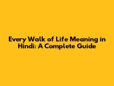 Every Walk Of Life Meaning In Hindi: A Complete Guide