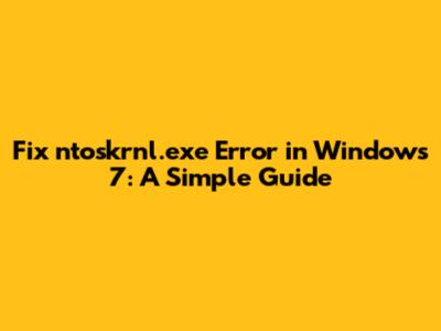 Fix Ntoskrnl.exe Error In Windows 7: A Simple Guide