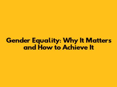 Gender Equality: Why It Matters And How To Achieve It