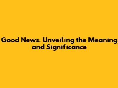 Good News: Unveiling The Meaning And Significance