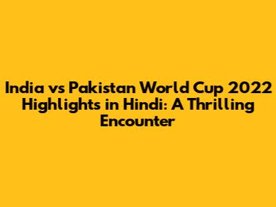 So, there you have it, guys! A quick rundown of the incredible India vs Pakistan World Cup 2022 highlights in Hindi. What a game! Let us know your favorite moments in the comments below!