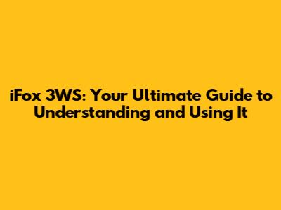 IFox 3WS: Your Ultimate Guide To Understanding And Using It
