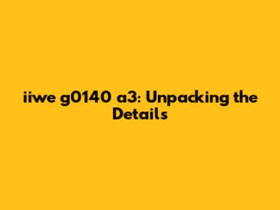 Iiwe G0140 A3: What You Need To Know