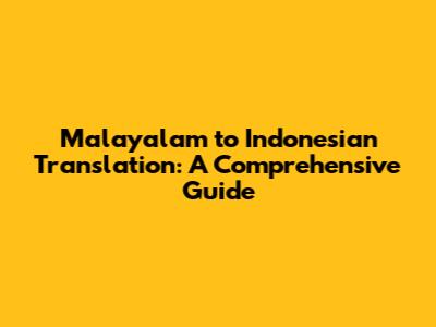 Malayalam To Indonesian Translation: A Comprehensive Guide