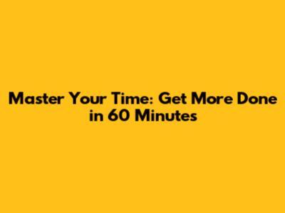 Master Your Time: Get More Done In 60 Minutes