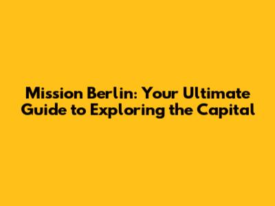 Mission Berlin: Your Guide To Exploring The Capital