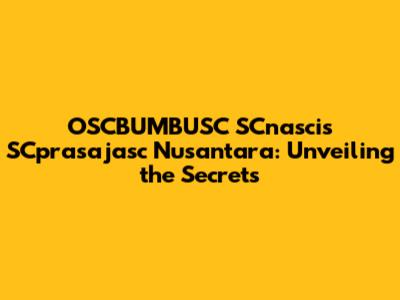 OSCBUMBUSC SCnascis SCprasajasc Nusantara: Unveiling The Secrets