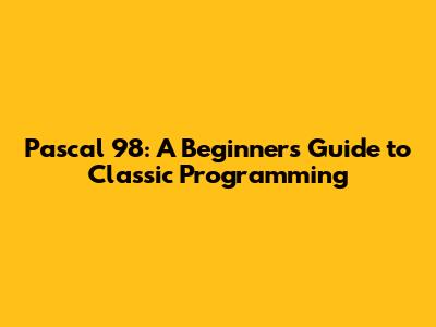 You might be thinking, "Why should I learn Pascal 98 when there are so many newer languages?" Here's why Pascal 98 is still valuable:
