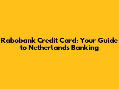 Hey guys! So, you’re thinking about getting a credit card in the Netherlands, and Rabobank keeps popping up? Smart move! Rabobank is a huge player here, and their credit cards are a solid choice for many. Whether you’re a local or an expat looking to get your finances sorted, understanding your credit card options is super important. Today, we’re diving deep into what a Rabobank credit card can offer you, why it might be the perfect fit for your needs, and what you need to know before you apply. We’ll cover everything from the nitty-gritty application process to the perks and benefits that come with holding one of their cards. Getting a credit card might seem a bit daunting, especially in a new country, but don't sweat it! We’re here to break it all down in a way that's easy to understand and, dare I say, even a little bit fun. So, grab a cuppa, settle in, and let’s explore the world of Rabobank credit cards in the Netherlands together.