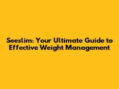 Seeslim: Your Guide To Weight Management