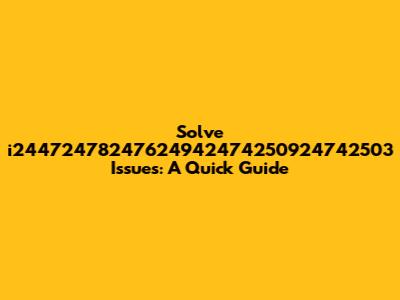 Solve I24472478247624942474250924742503 Issues: A Quick Guide