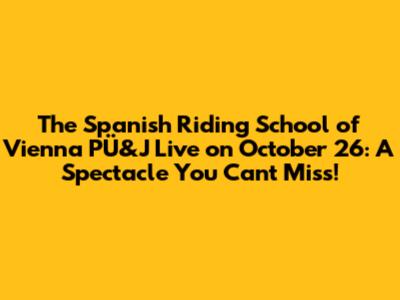 Spanish Riding School Vienna: PÜ&J Live, Oct 26 - A Must-See!