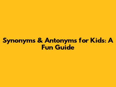 Synonyms & Antonyms For Kids: A Fun Guide