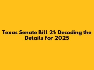 Hey there, folks! Let's dive into the nitty-gritty of Texas Senate Bill 21 (SB 21), a piece of legislation that's sure to be making waves in the Lone Star State come 2025. This article is your one-stop shop for understanding what SB 21 is all about, what it aims to achieve, and how it might impact you. We'll break down the legalese into plain English, so you can stay informed and engaged. So, grab a sweet tea, kick back, and let's unravel the mysteries of SB 21 together!