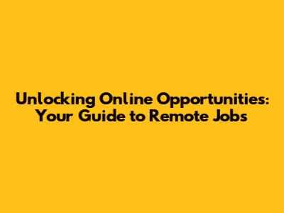 Unlocking Online Opportunities: Your Guide To Remote Jobs