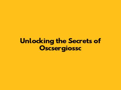 Unlocking The Secrets Of Oscsergiossc