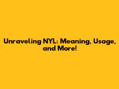 Unraveling NYL: Meaning, Usage, And More!