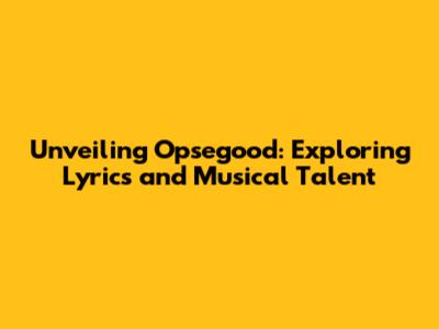 Unveiling Opsegood: Exploring Lyrics And Musical Talent